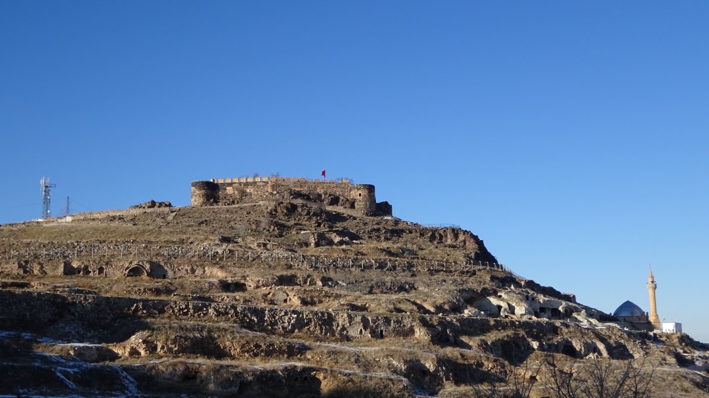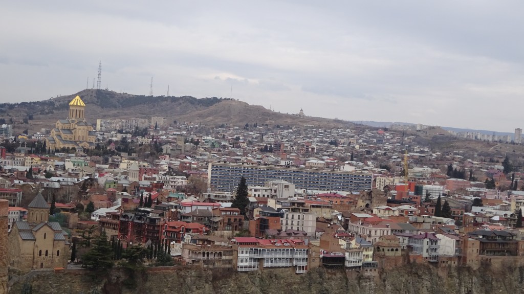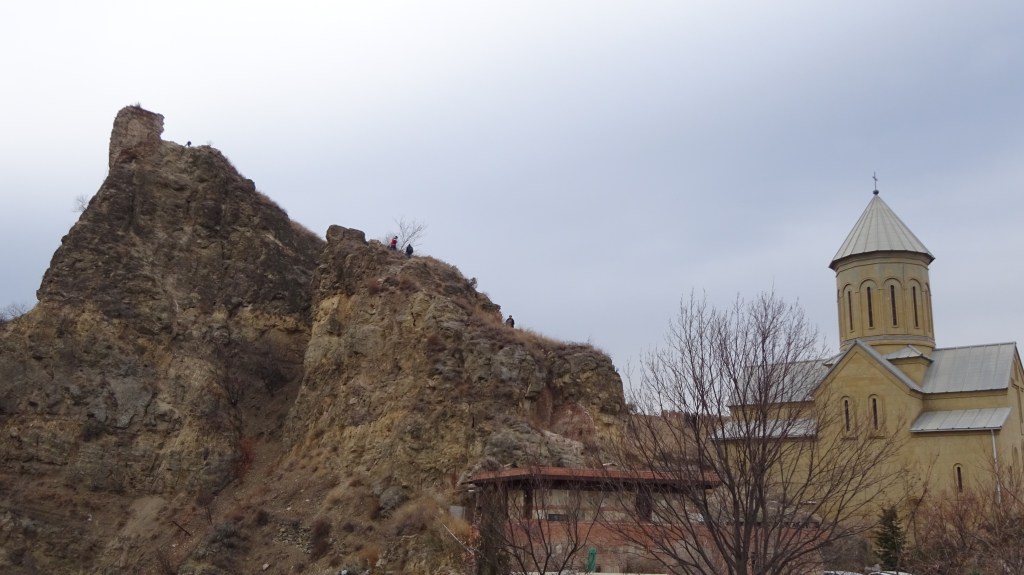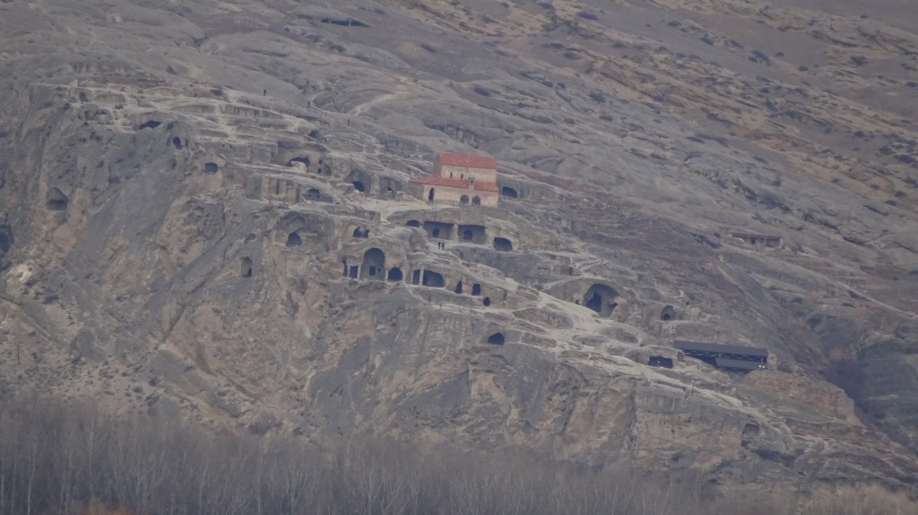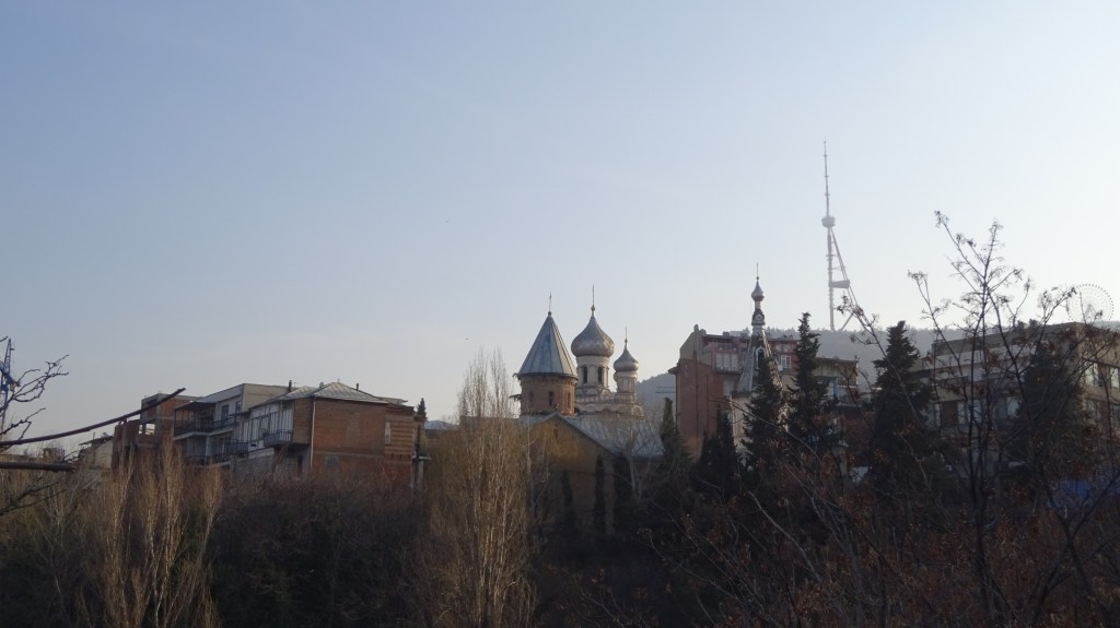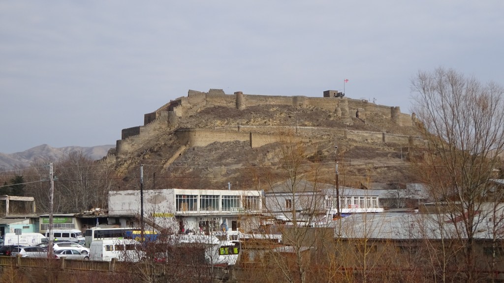 Direkt hinter der Stadt ging es direkt nach oben. Der Weg bestand aus Geröll und Tierexkrementen. Die größte Hürde bestand darin, nicht direkt auf den ersten Metern in Tierkacke zu tappen. Da in Georgien auf den Straßen alle Tiere (Pferde, Rinder, Kühe, Gänse, Schweine, Hunde, Katzen usw.) einfach frei umherspringen „dürfen“ und ihnen dementsprechend auch keine feste Weideflächen zugewiesen sind, kann man schnell mal in einem Kuhfladen oder in Kuhdung stecken bleiben. 😉