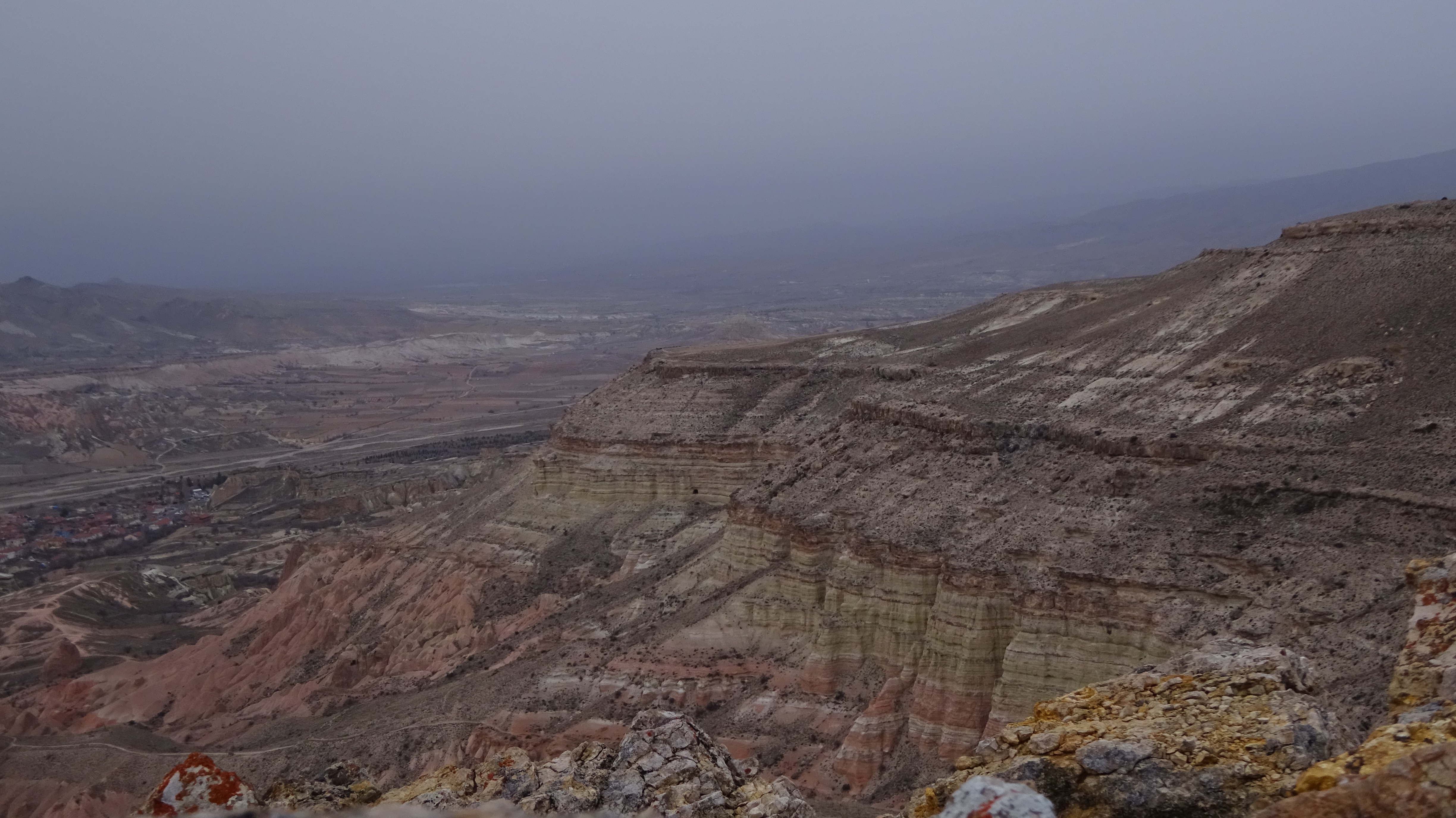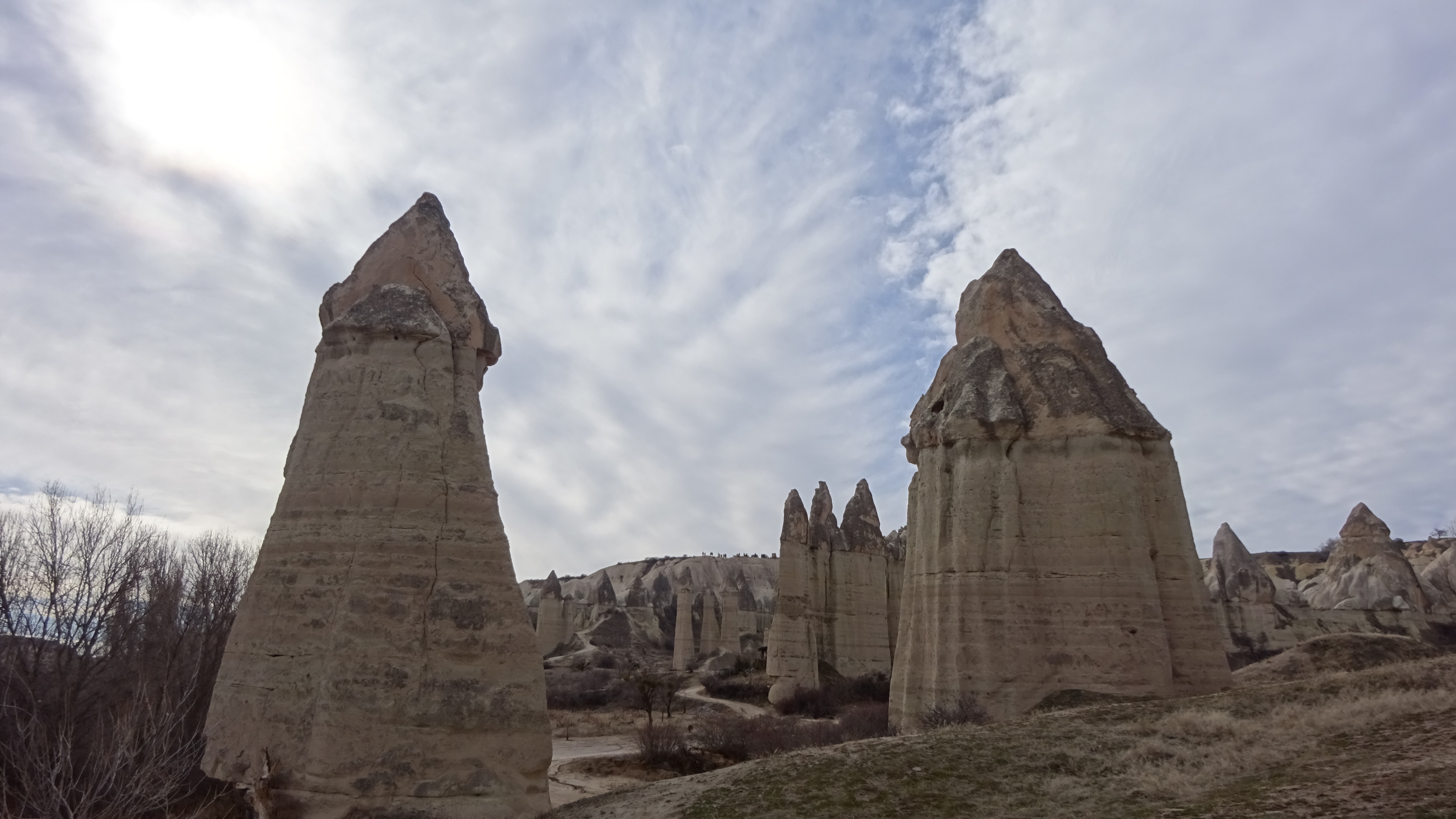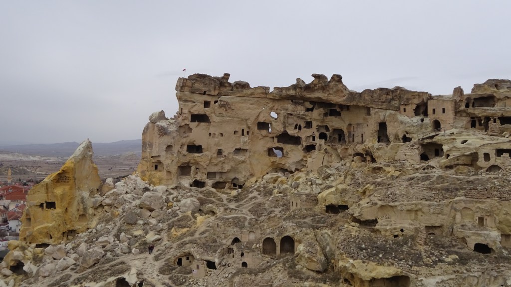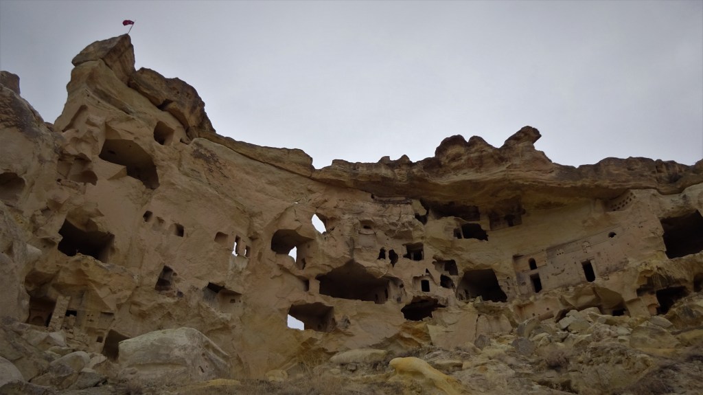 Direkt hinter der Stadt ging es direkt nach oben. Der Weg bestand aus Geröll und Tierexkrementen. Die größte Hürde bestand darin, nicht direkt auf den ersten Metern in Tierkacke zu tappen. Da in Georgien auf den Straßen alle Tiere (Pferde, Rinder, Kühe, Gänse, Schweine, Hunde, Katzen usw.) einfach frei umherspringen „dürfen“ und ihnen dementsprechend auch keine feste Weideflächen zugewiesen sind, kann man schnell mal in einem Kuhfladen oder in Kuhdung stecken bleiben. 😉