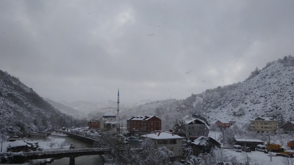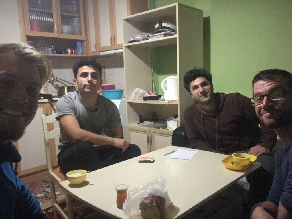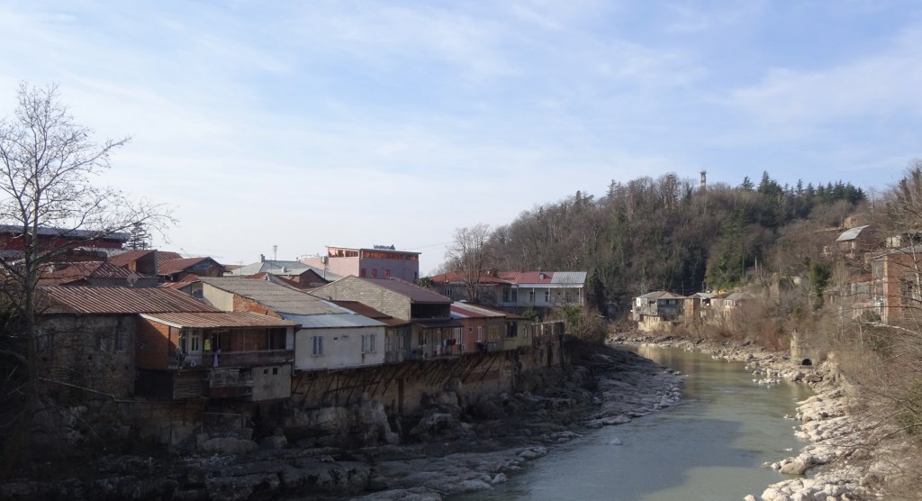 Nachdem ich über eine Brücke endlich den Fluss überqueren konnte, war ich auch schon in meinem heutigen Zielort: Tsaldashi angelangt. Nun stellte sich nur die Frage, in welcher Unterkunft ich denn über Nacht unterkommen werde. Ich war gänzlich ohne Internet unterwegs, da ich auf den Kauf einer georgischen Sim – Karte verzichtete. Zuverlässige Lastminute – Helfer wie Booking oder Airbnb funktionierten also in dem Moment nicht. Ich war noch nicht mal in dem Ort richtig angekommen, schon quatschte mich ein älterer Georgier an und bot mir an, in seinem Guesthouse unterzukommen. Das Angebot nahm ich auch direkt an und saß schon kurze Zeit später an einem wohlgedeckten Tisch. Mittlerweile war es ziemlich kalt draußen geworden und die warme Suppe, der warme Tee und die warme Hauptmahlzeit taten unglaublich tut.